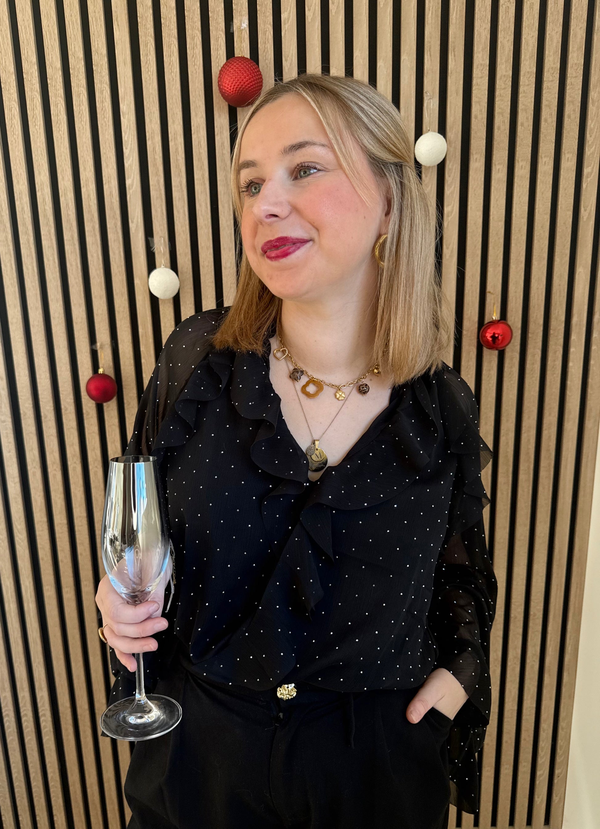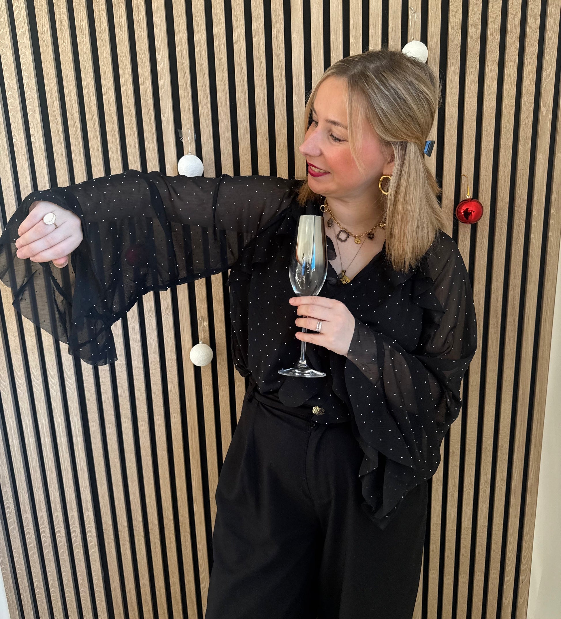 ♡ Blouse à volants avec strass, parfaite pour vos tenues de fêtes, anniversaires