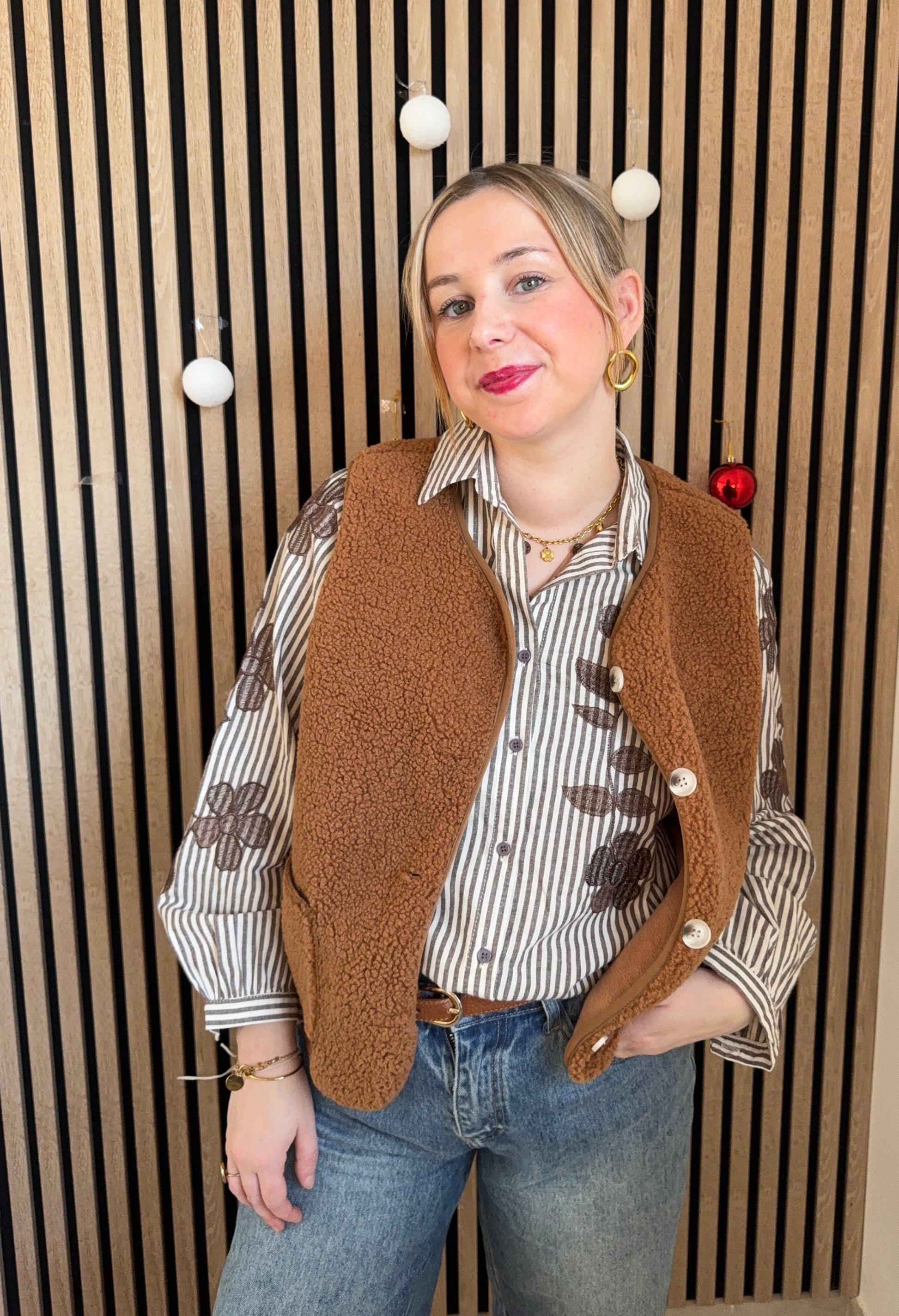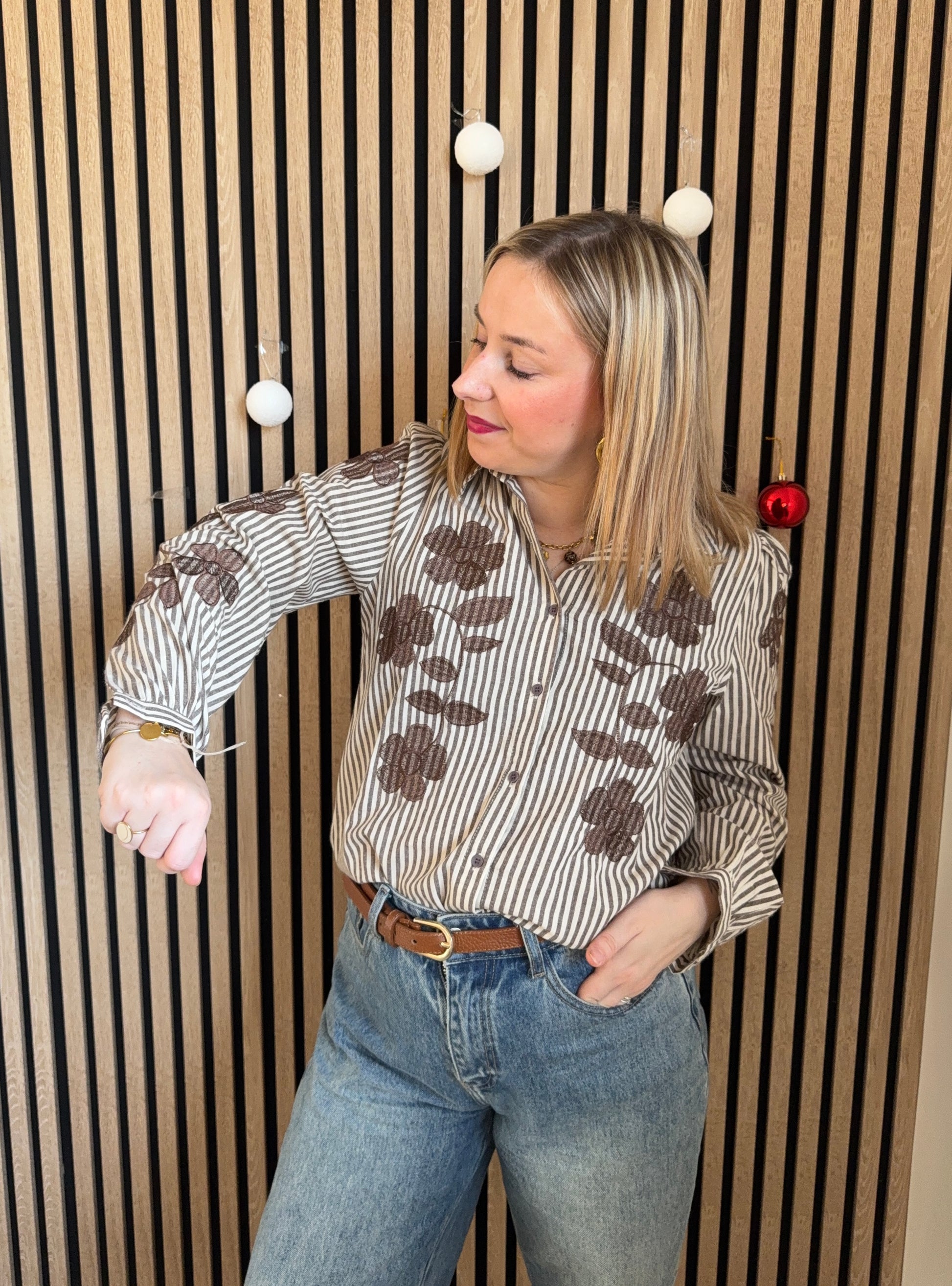 ♡ Chemise marron à rayures brodé