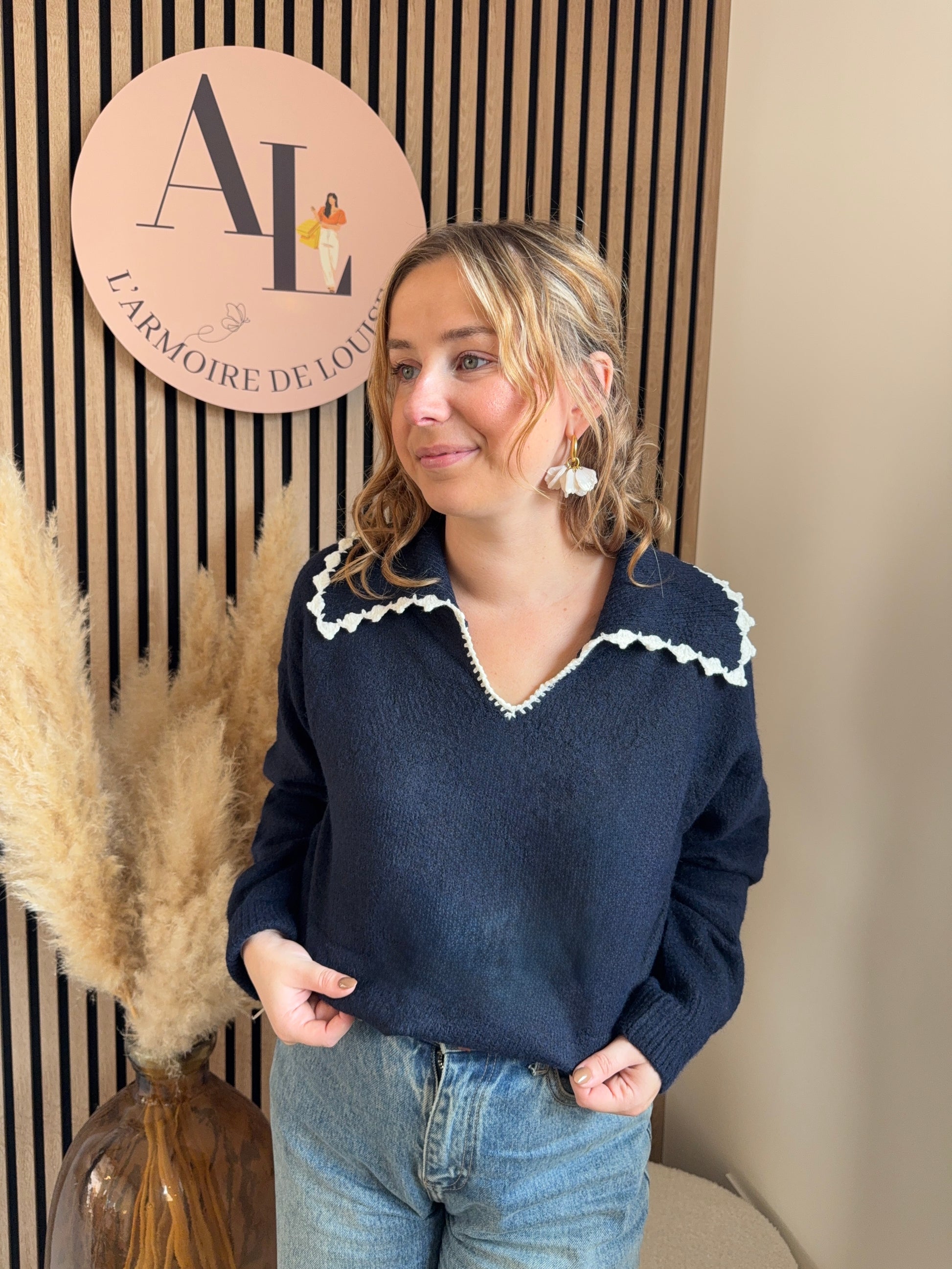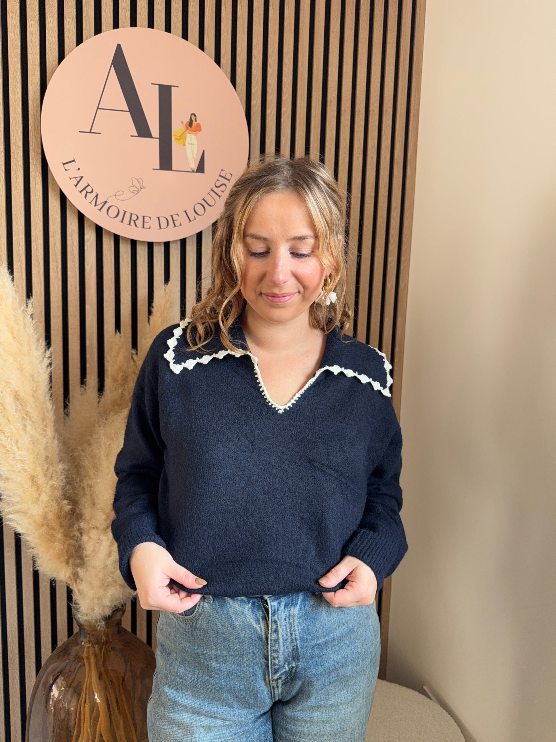 ♡ Pull Bleu marine avec col Claudine